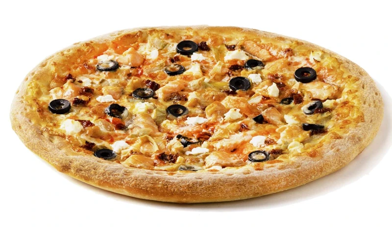 соус томатный, сыр моцарелла, семга, артишоки, вяленые томаты, маслины, сливочный сыр